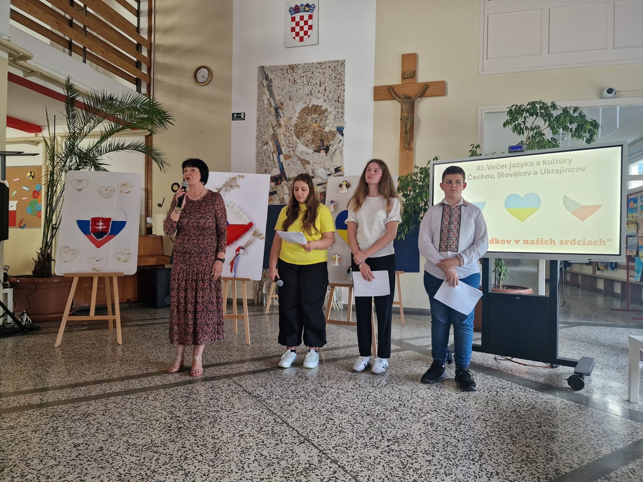Ravnateljica škole Mirjana Faltis, otvorila je Večer nacionalnih manjina učenika Osnovne škole, a potom su takav rad i učenje manjinskih jezika pozdravili predsjednik Matice slovačke Lipovljani, Josip Krajči, predsjednica Češke besede Općine Lipovljani Vjera Ožoga i Ivan Semenjuk predsjednik Ukrajinskog kulturno prosvjetnog društva Karpati.